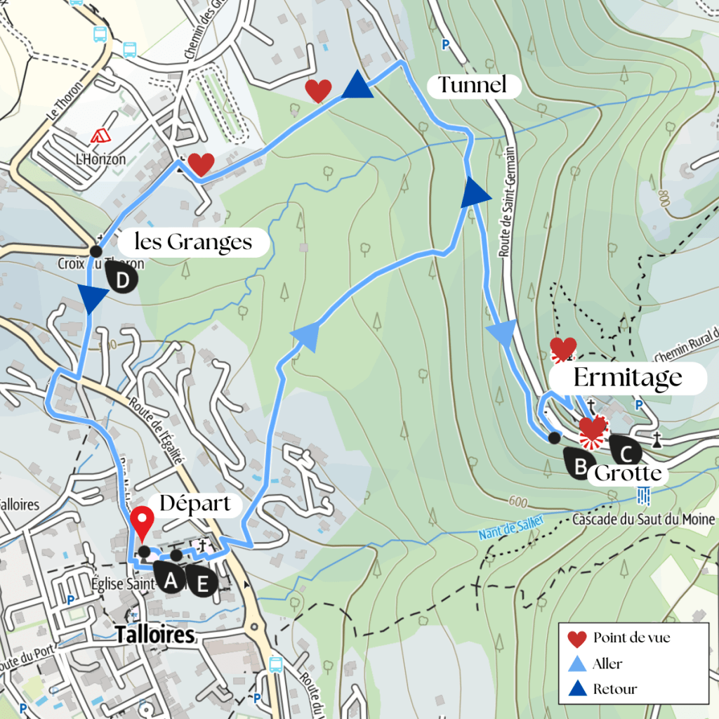 ✔ ️STEP 2 : Vous trouverez, après le tunnel, un chemin de croix qui travers la route, et vous mènera aux abords de la fameuse grotte de l’ermite Saint-Germain. Au-dessus, via la route, se trouve l’ermitage et son panorama d’exception.