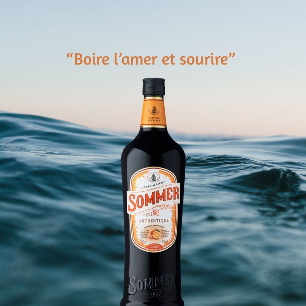 Détournement du poème « Voir la mer et mourir », en utilisant la mer comme référence à la marque « Sommer » qui reflète un apéritif en terrasse sur la côte.