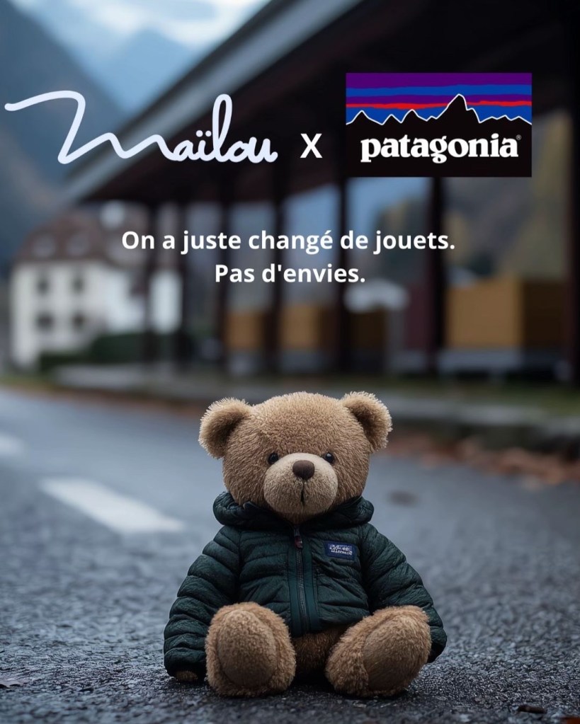 Une doudoune Patagonia pensée pour les objets les plus précieux (oui, même à 30 cm de haut). Le nounours oublié sur l’aire d’autoroute qui devient aussi précieux que la veste qu’on gardera le plus longtemps possible.