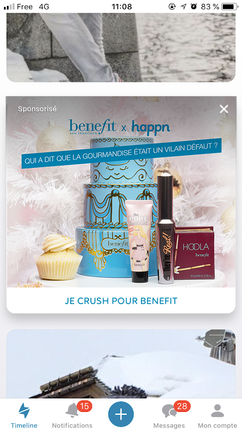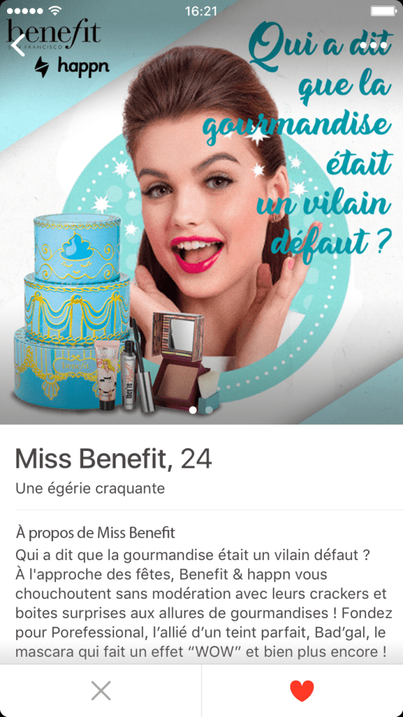 À l’occasion d’un partenariat in-app pour les fêtes de fin d’année, happn et Benefit s’associent pour intégrer une publicité interactive à l’application de rencontres.