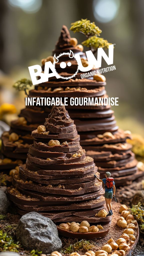 Visuels reprenant les saveurs des produits Baouw et les mettant en scène sous forme de paysages. Association du lexique de la gourmandise et de l’effort.