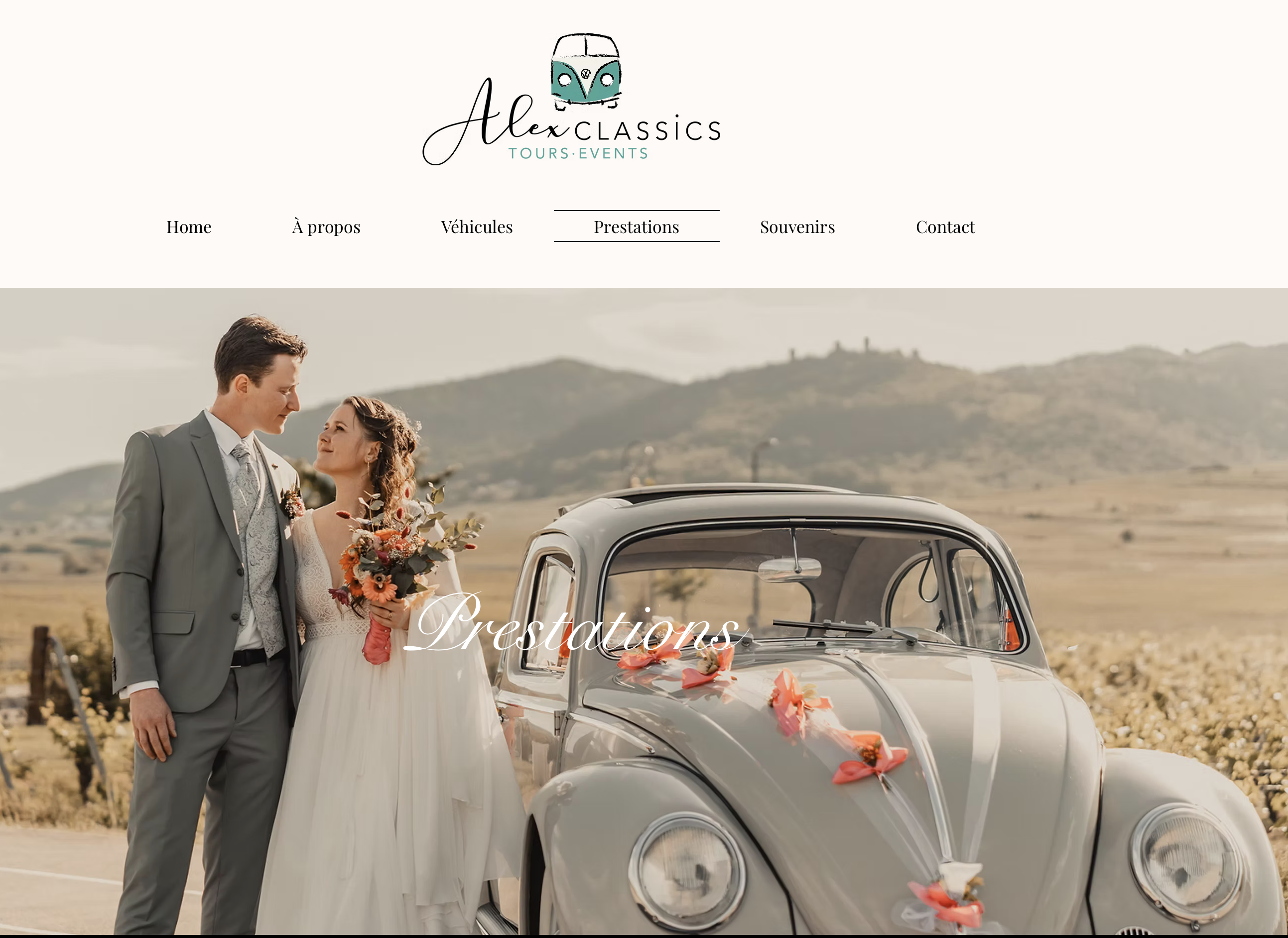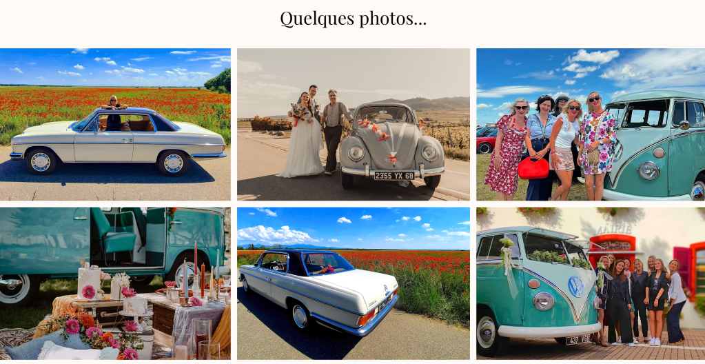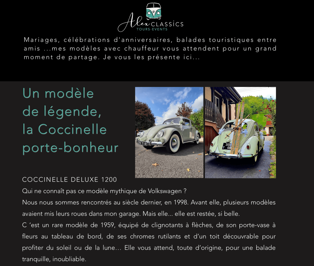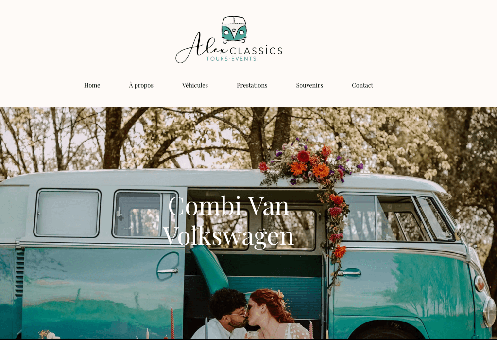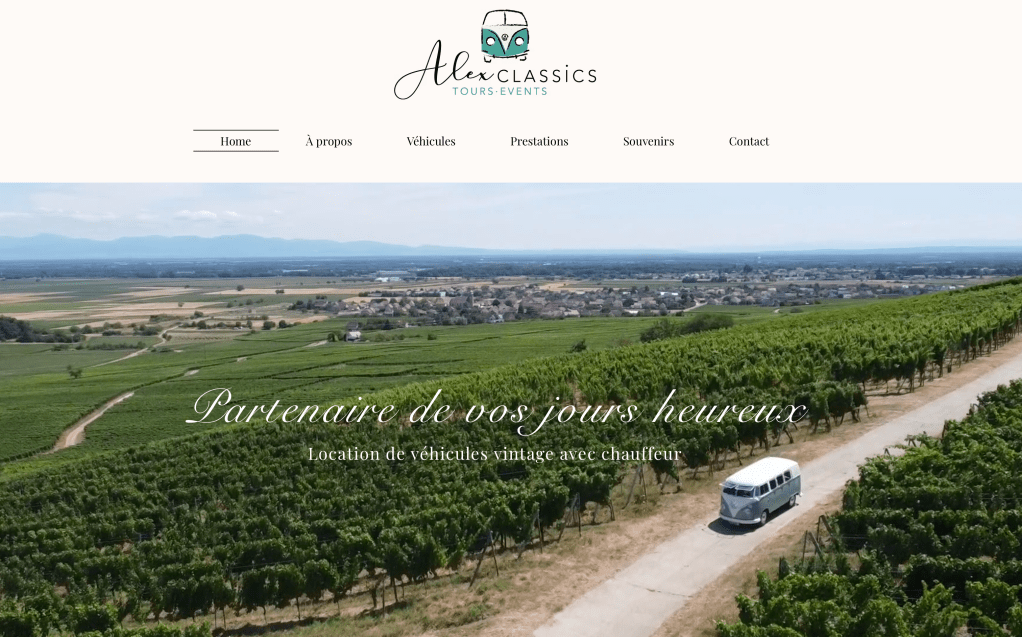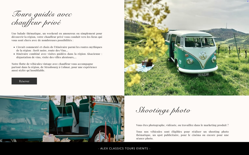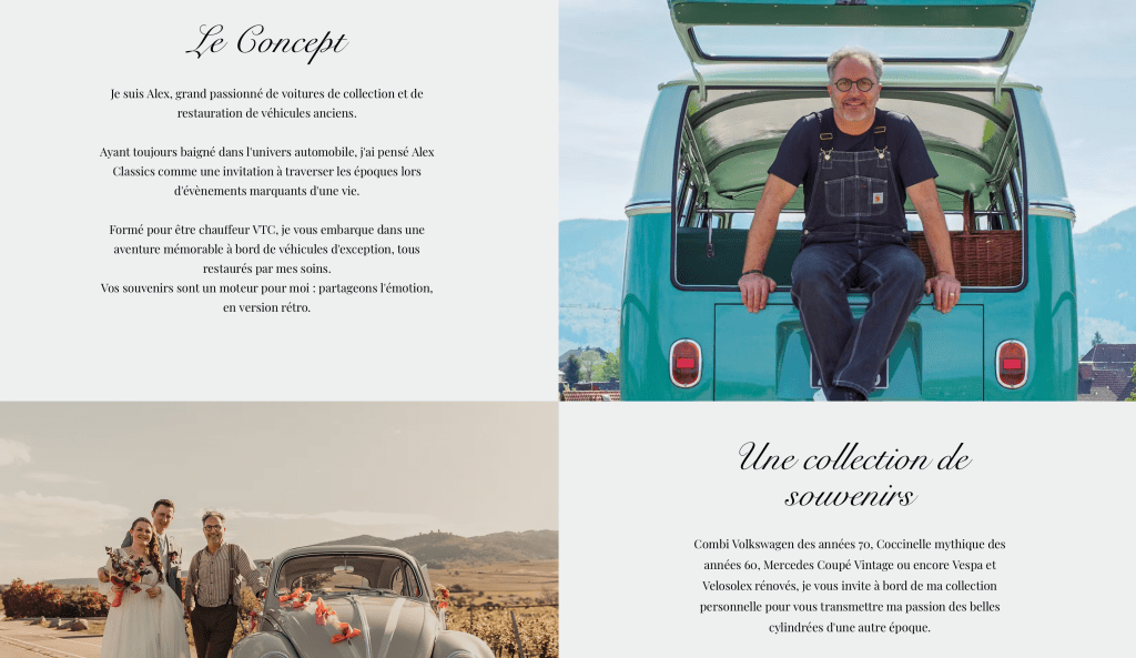 Alexandre possède un site Internet depuis 2021, qui promeut son activité de chauffeur VTC de véhicules vintages pour évènements.