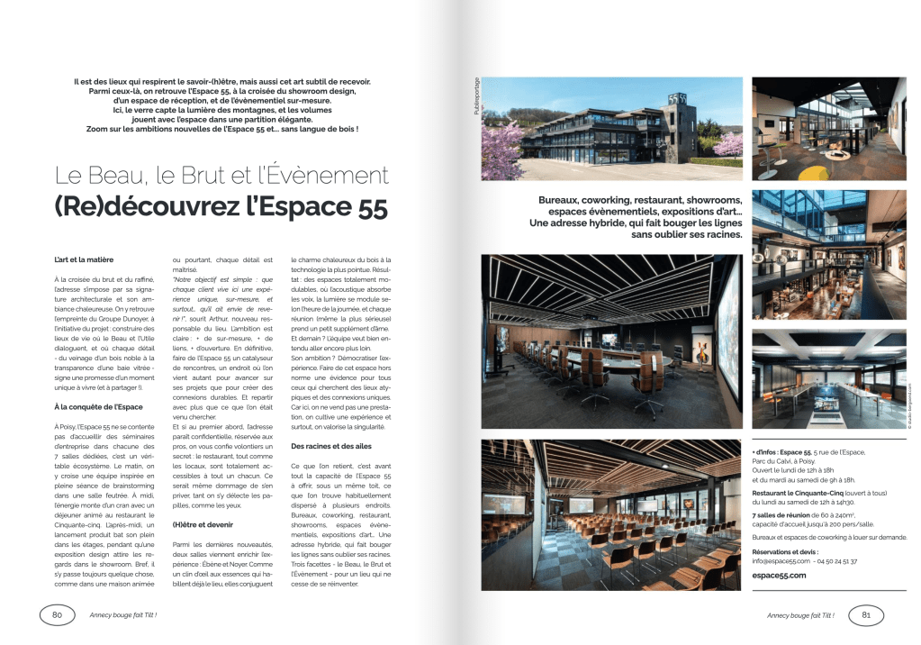 -Espace 55, lieu de réception d’évènements, séminaires et showroom atypique du Groupe Dunoyer à Epagny : pages 80-81